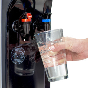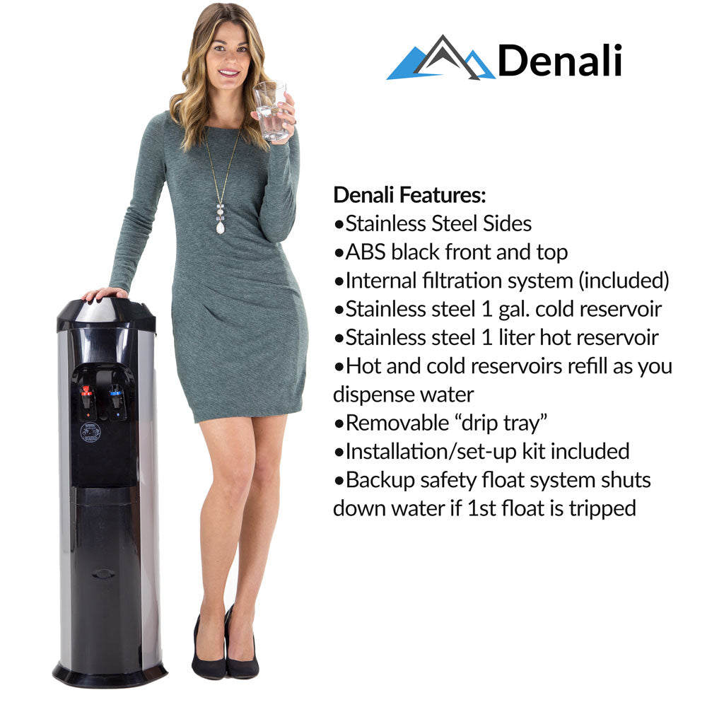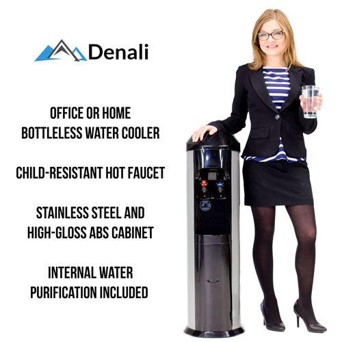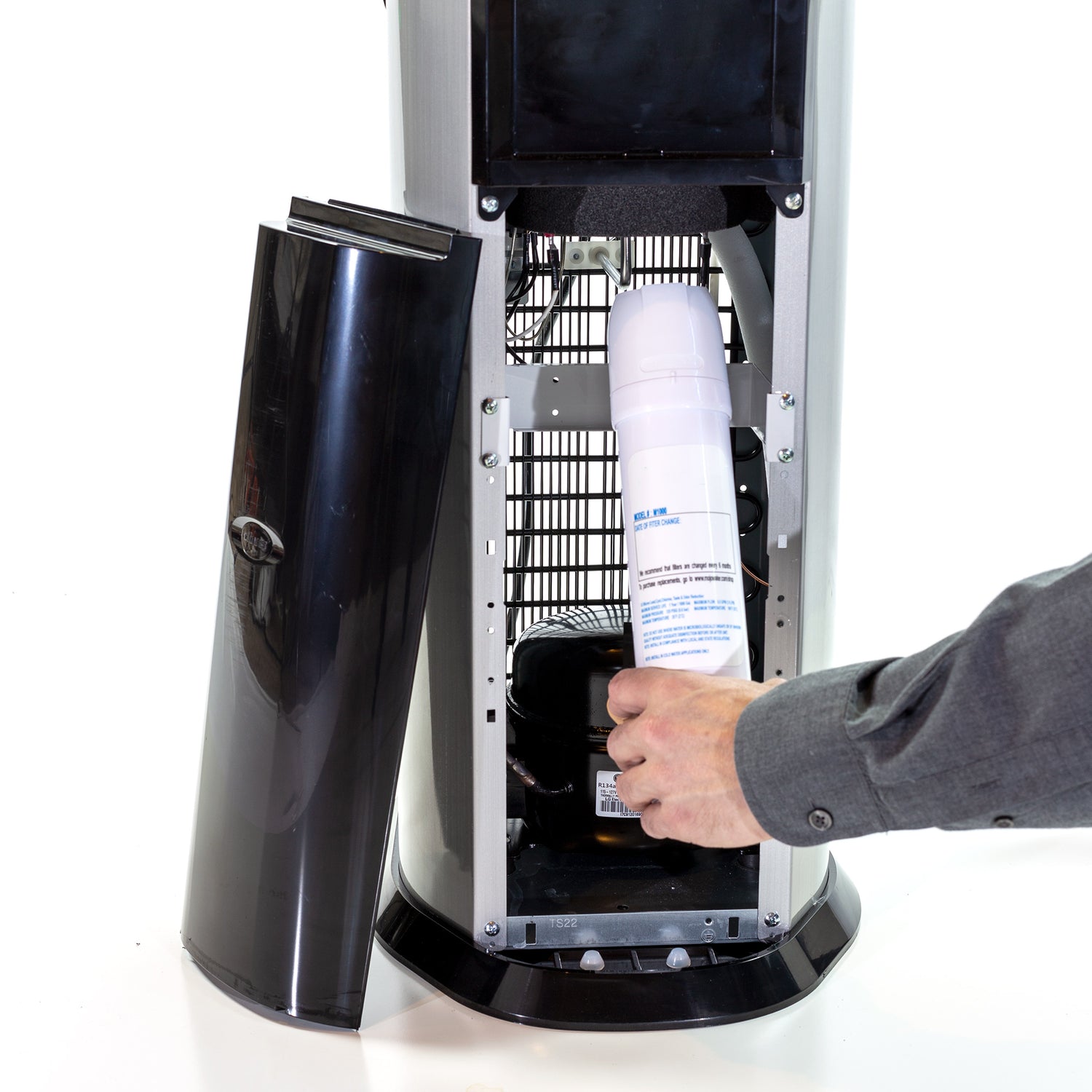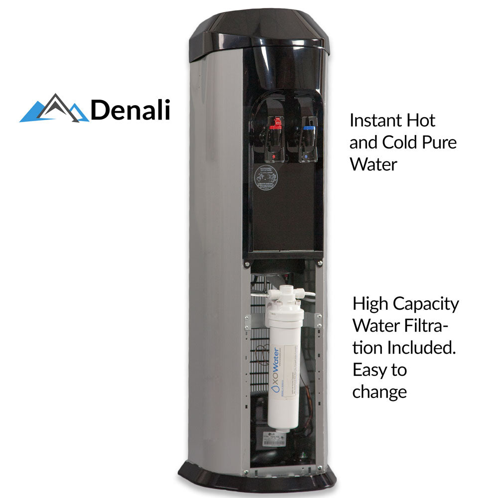 Beautiful Stainless Steel & Black Cabinet Instant Cold Water No-Touch Faucet Instant Hot Water Child-Resistant Faucet 100% Stainless Steel Cold & Hot Reservoirs Protects Water Purity & Cooler Longevity 1,200 Gal. Water Purification System Installation Kit Weight 37 lbs Dimensions 12 × 12 × 40...