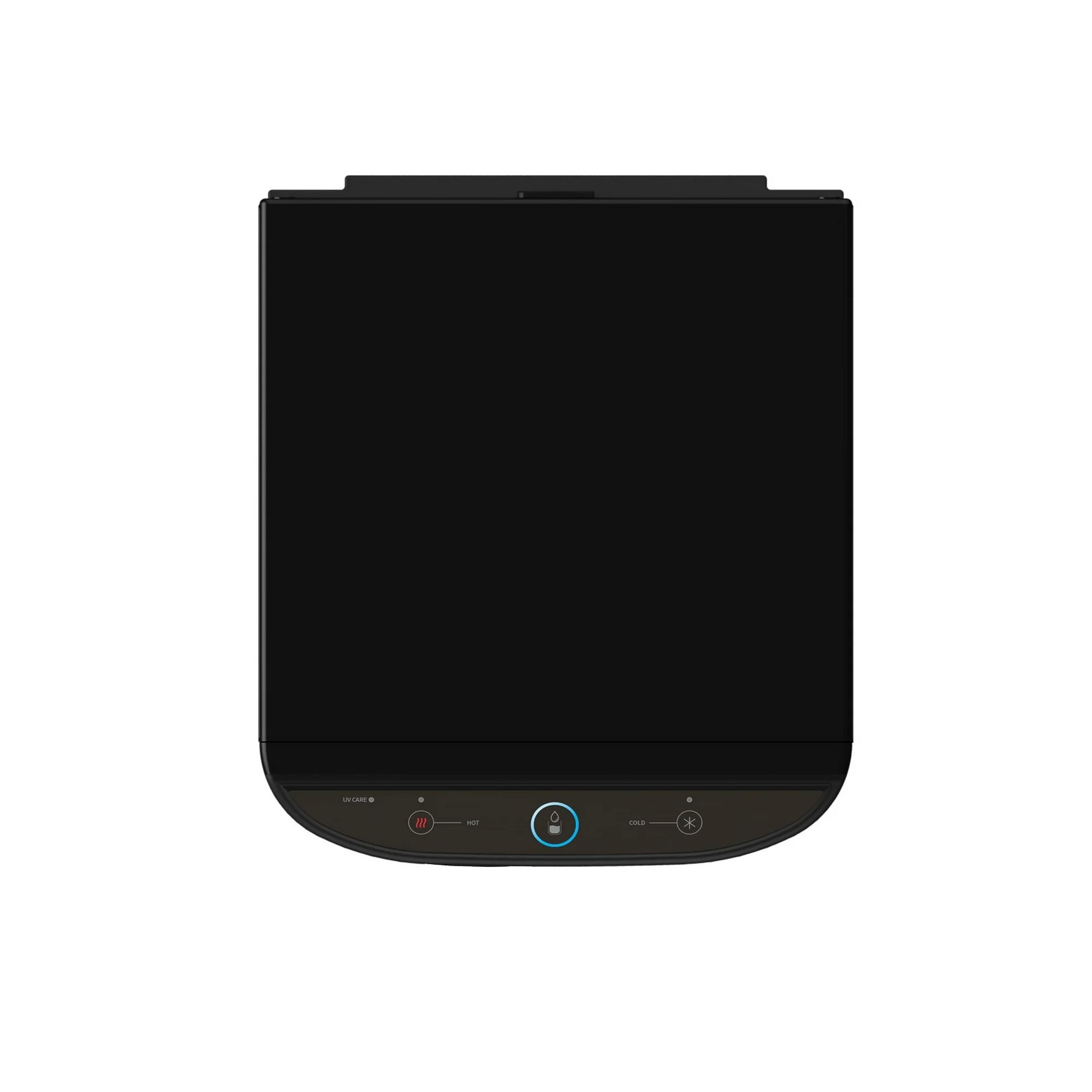 HIGHER CAPACITY Water Cooler with Feather Touch Control panel, GAC Filtration/Purification and UV LED Self Cleaning features. This cooler purifies and Dispenses COLD and HOT filtered water instantly. UV LED PROTECTED cold water holding tank for even greater water purification - TEMPERATURE CONTROLLED - produces COLD and HOT water. EASY ACCESS - makes filter change a snap, TALL HEIGHT – makes for convenient dispensing, HYGIENIC STAINLESS STEEL – holding tank, DURABLE POLYPROPYLENE - self-closing spickets (no breakable faucets) Dimensions 12" x 14" x 43"