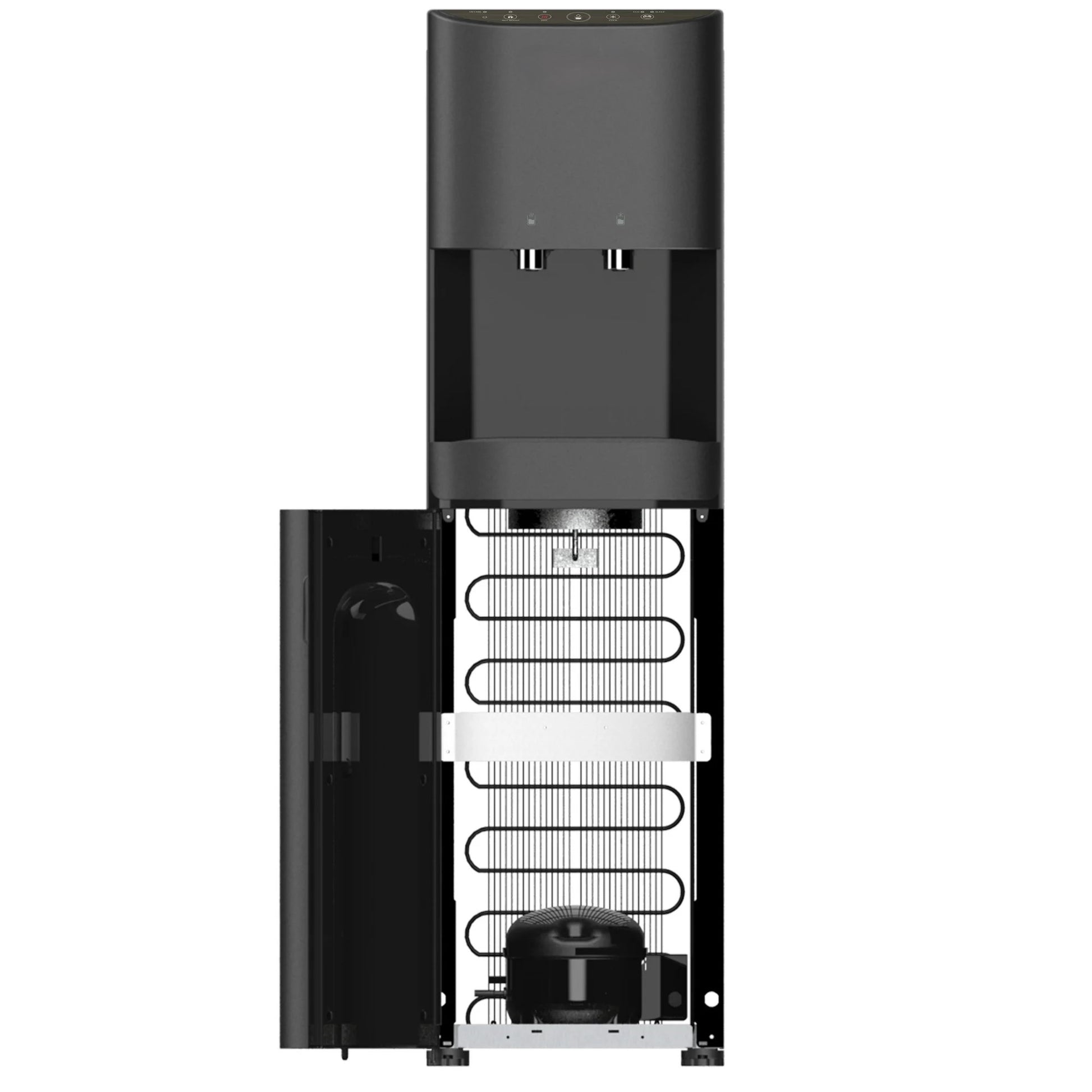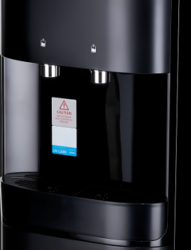 HIGHER CAPACITY Water Cooler with Feather Touch Control panel, GAC Filtration/Purification and UV LED Self Cleaning features. This cooler purifies and Dispenses COLD and HOT filtered water instantly. UV LED PROTECTED cold water holding tank for even greater water purification...